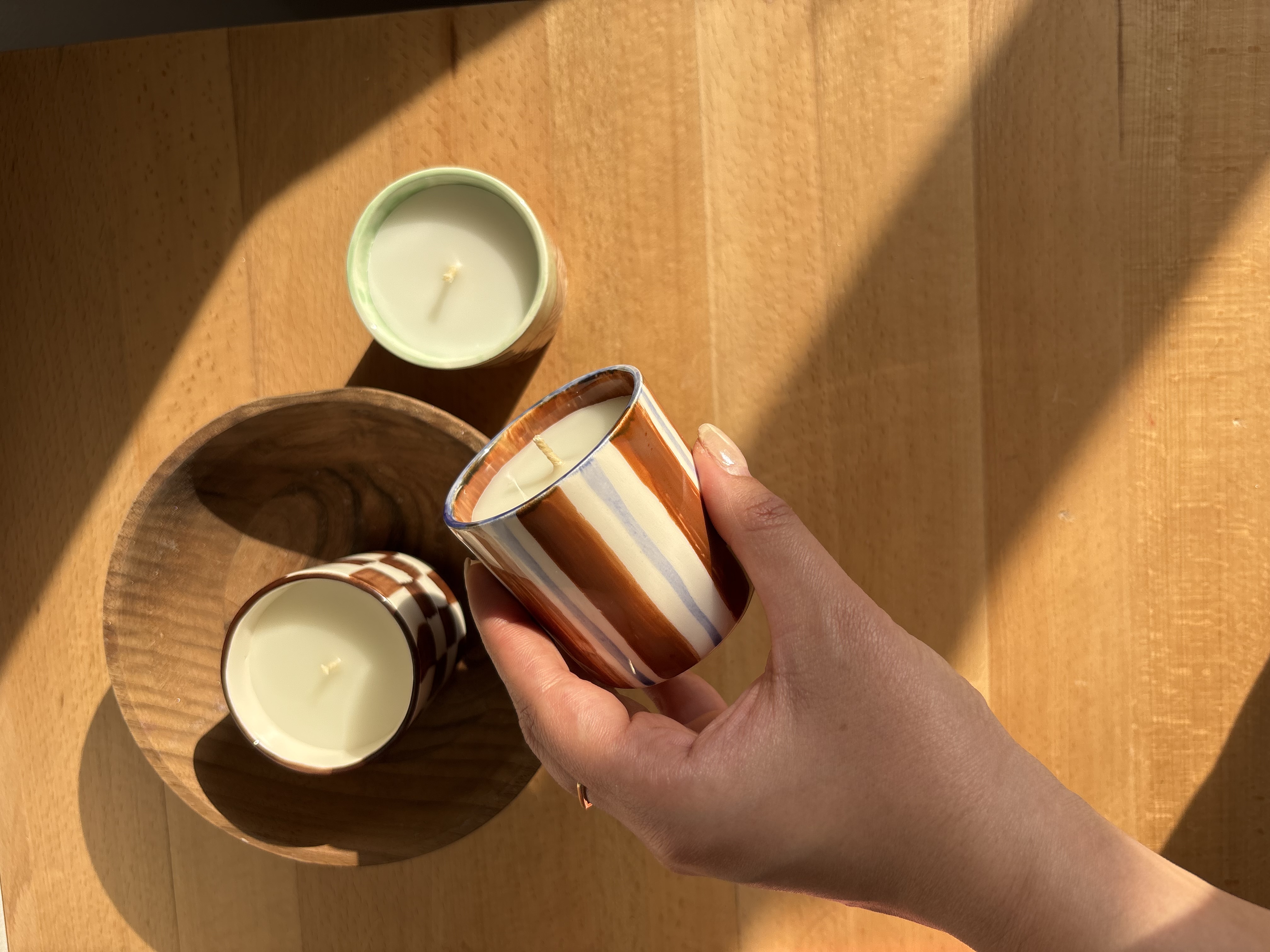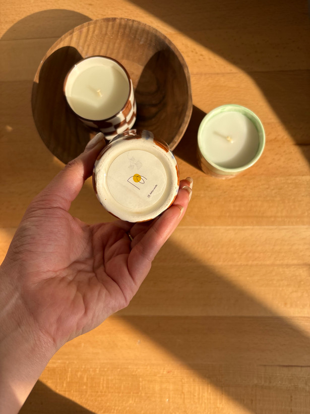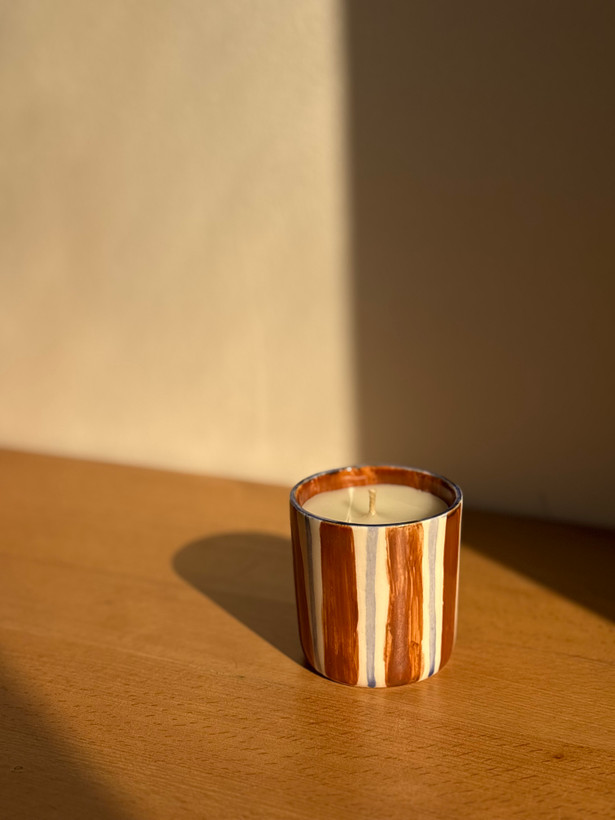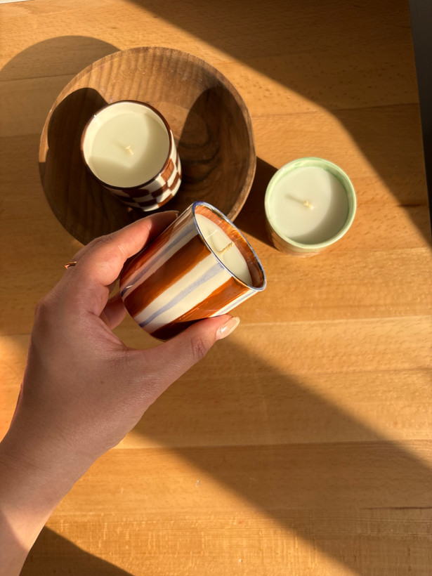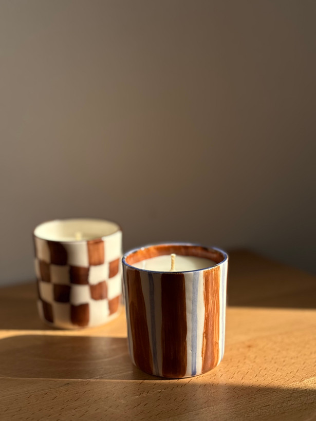 شمع سرامیکی مدل راه راه ، نقاشی شده با دست هدیه ای ارزشمند به عزیزانتون .
